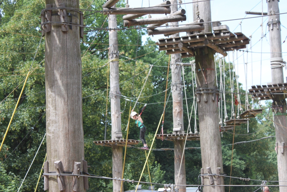 Am 08. Juni machten sich Schüler und Lehrer der Abschlussklassen des Standortes Anekabel auf, den Kletterpark auf dem Bielefelder Johannisberg zu erkunden. Nach einer kurzen Sicherheitseinweisung durch das Fachpersonal vor Ort konnte 4 Stunden lang in Kleingruppen das Klettern in 10 verschiedenen Pacours und 5 verschiedenen Anforderungsbereichen erprobt werden. Bei angenehmen 22 Grad und verwöhnt durch reichlich Sonne entdeckten viele Schüler und Kollegen ungeahnte Talente in den Seilen und so mancher Schüler traute sich sogar auf die goldenen und roten Strecken in bis zu 14 Metern Höhe. Ein toller Ausflugstag an dem vor allem der Spaß, das gemeinsame Überwinden von Hindernissen und sportliche Betätigung im Vordergrund standen – bestimmt nicht zum letzten Mal…..