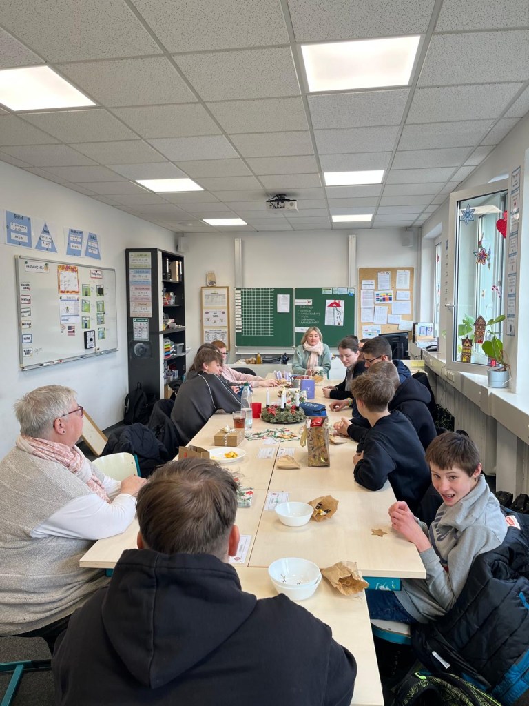 Einen hohen Stellenwert hat für uns auch die Advents- und Weihnachtszeit in den Klassen 5-8. Um die kulturelle Bedeutsamkeit dieser Zeit zu unterstreichen bieten wir feste Rituale und Aktionen an. Dazu gehören das morgendliche Singen von Liedern, der Adventskalender und das Lesen von Geschichten. Eine weitere Tradition ist der Weihnachtsaktionstag, an dem die SchülerInnen an verschiedenen Aktivitäten und Angeboten teilnehmen können. Großen Anklang findet ebenfalls ein Ausflug ins Kino im Rahmen der Schulkinowochen.